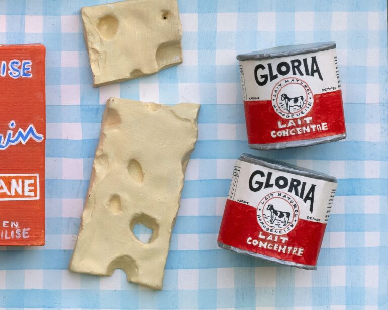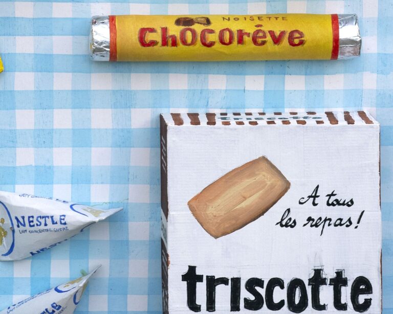 « Commissions » fait partie d’une série de volumes ou de bas-reliefs représentant des emballages de produits alimentaires. Il me parait ici important d’aborder la notion de « Quotidien », les courses, les commissions, que nous sommes tous obligés de faire pour nous nourrir, en achetant un certain nombre de produits issus de l’industrie alimentaire et auquel on ne prête pas ou plus forcément attention tellement leur achat est régulier. Ces produits sans ambition s’immiscent dans notre vie la plus triviale, et pourtant, ils créent un univers d’images et de sensations que vous garderez avec vous longtemps. La mise en œuvre de manière brute, d’esquisse rude parfois maladroite, figure l’érosion de la mémoire. C’est aussi une manière d’humaniser cette imagerie industrielle.