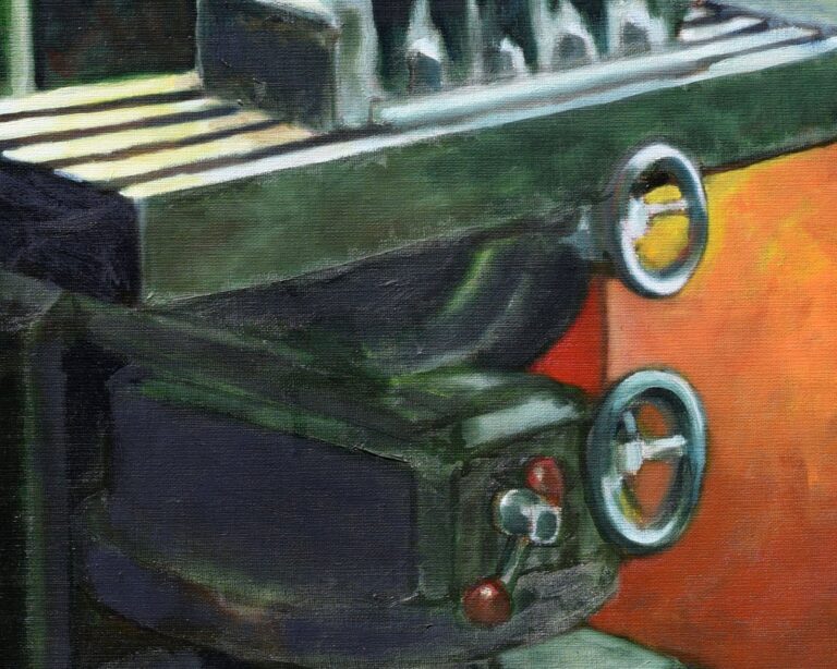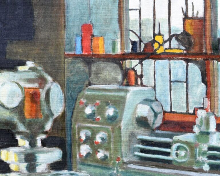 Fraiseuse et tour dans une usine de rectification de métaux rue Saint-Maur à Paris.