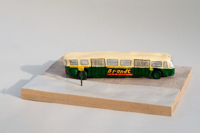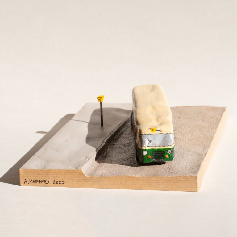 A nouveau une madeleine de Proust, cet autobus représenté comme l’aurait fait un enfant. Souvenir de mes jeunes années et des trajets pour aller à l’école.