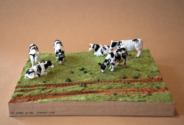 Une représentation de l’élevage en ruralité, œuvre présente notamment à l’exposition collective « Pleine campagne » à Saint-Aubin-Châteauneuf dans l’Yonne en 2026.
