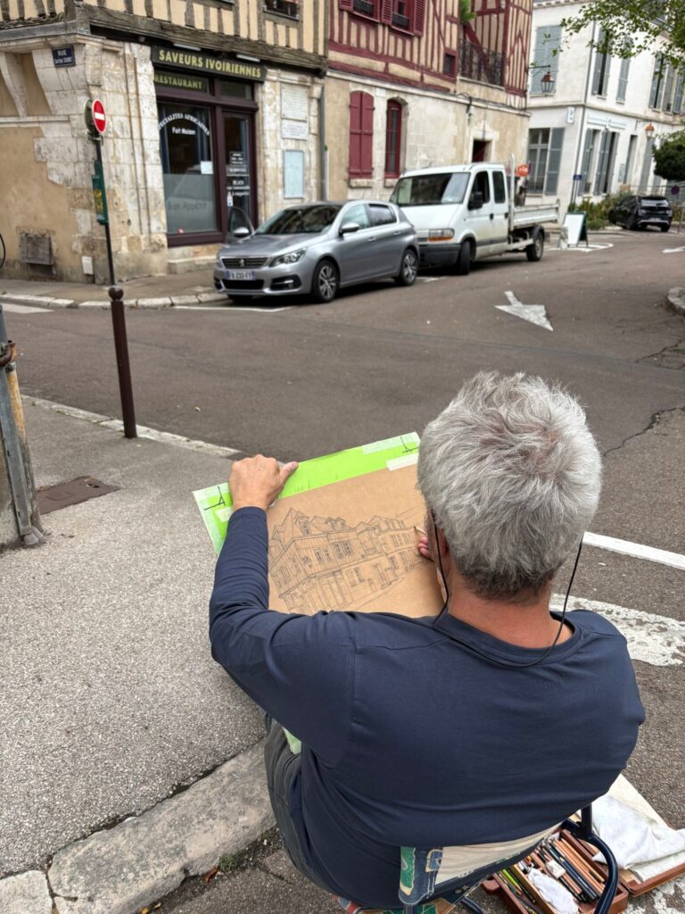 Dessin de la belle maison du Capitaine Coignet à Auxerre, Bourgogne.