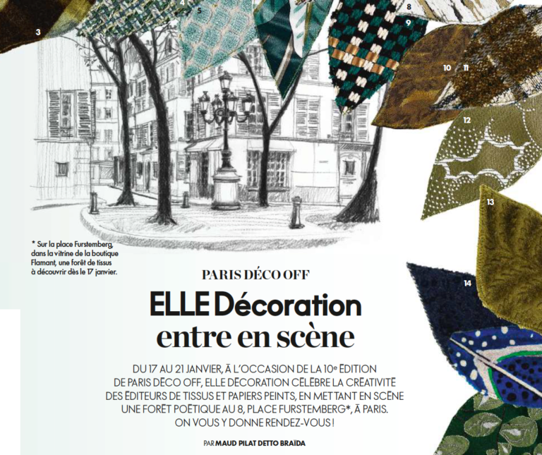 Ce dessin est paru dans le magazine ELLE décoration n°269 pour présenter un dossier sur la place Furstenberg.